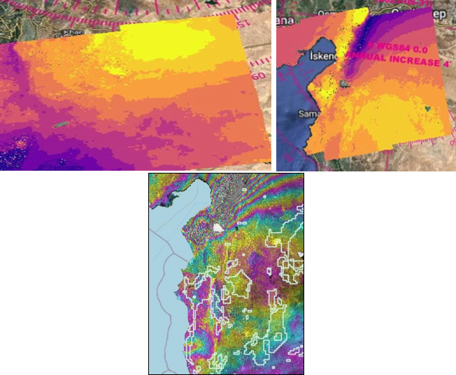 المبررات: وضع مخططات للأراضي غير المستقرة بسبب الهزات الأرضية باستخدام تقنيات معالجة الصورالفضائية والرادارية بمقارنة وتحليل الصور قبل وبعد الأحداث الزلزالية المسجلة.