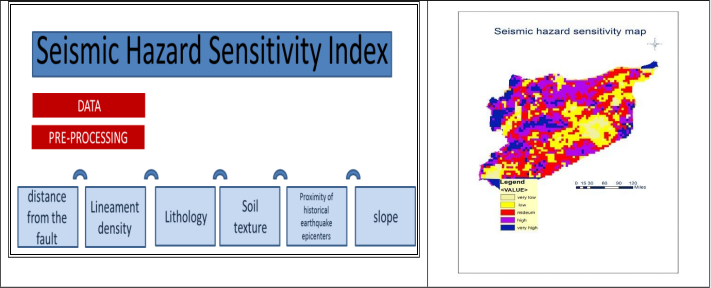 الحصول على معالجة للصور الفضائية – والرادارية ونموذج الارتفاع الرقمي تبين أماكن الحساسية الزلزالية وفقالمعايير الموضوعة في الدراسة واستخدام تقنيات المعايير المتعددة والتي هي ذات أهمية كبرى في تشكيل عدم الاستقرار عند التعرض للهزات الزلزالية العنيفة.